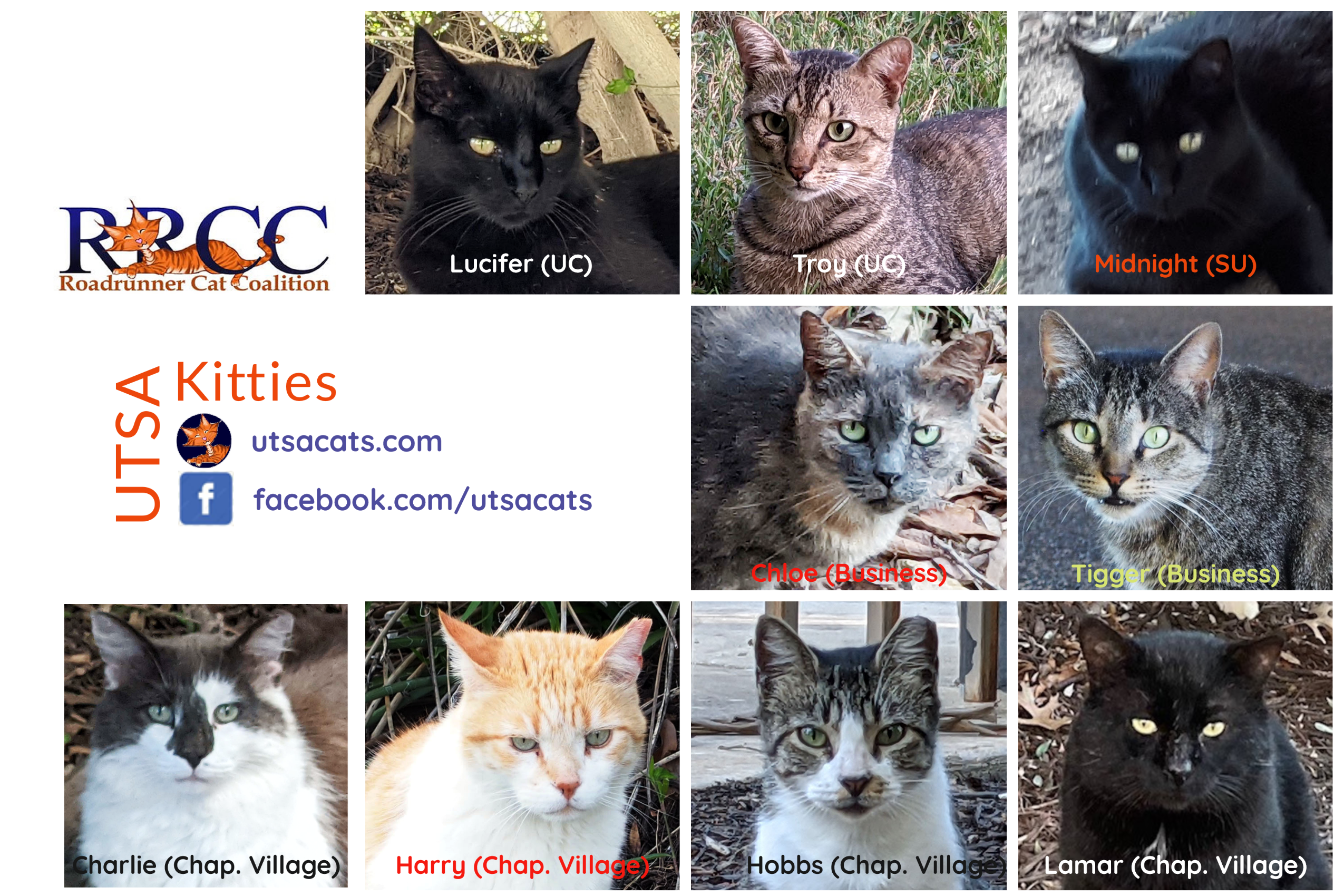 UTSA-Kitties-Faces-2023-Jan08 Published January 9, 2023 at 2550 × 1700 in Current Cats on Campus ← Previous Next →